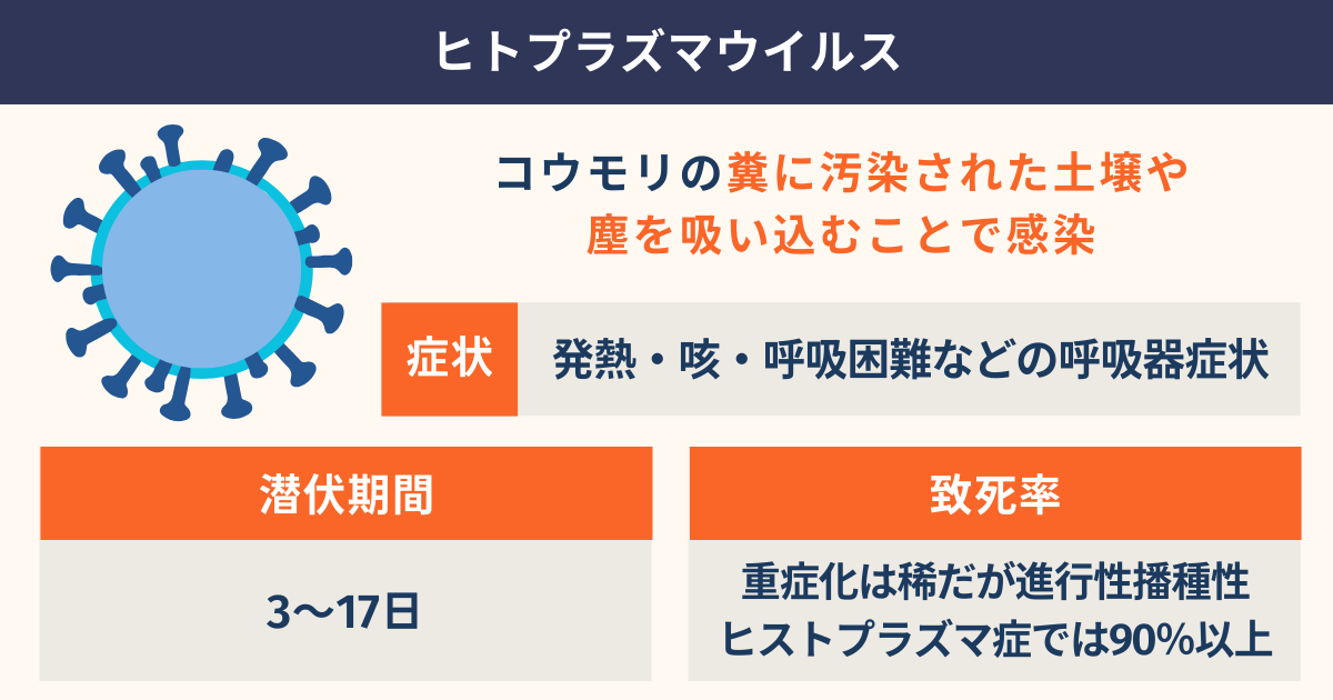 鳥やコウモリの糞に汚染された土壌や塵を吸い込むことで感染します。