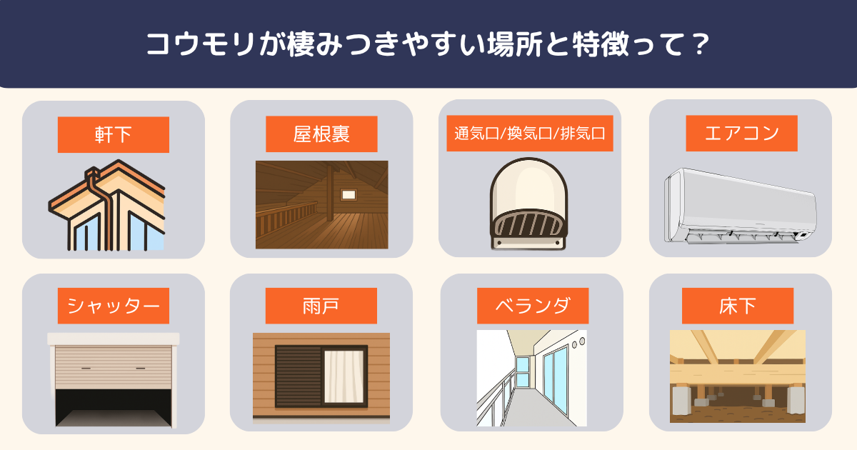 コウモリが自宅に棲みつくと、糞や尿による悪臭や衛生面での問題が発生しやすくなります。 コウモリの身体からダニやウイルスを媒介する可能性もあり、 放置すると健康を損ねたり病気を発症したりしてしまうかもし ...