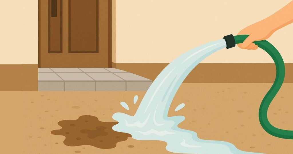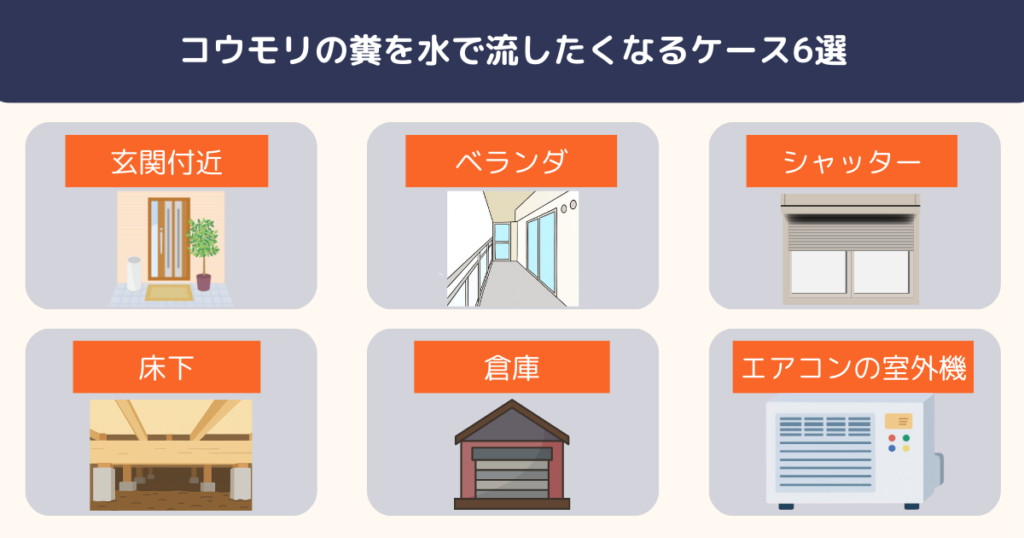 コウモリの糞を見かけた際、「水をかければすぐきれいになる」と考える方も多いでしょう。