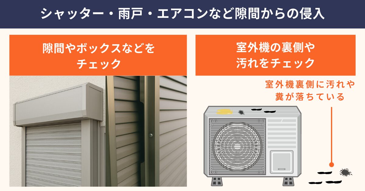 屋根瓦のわずかな隙間や換気口、雨戸の戸袋など、