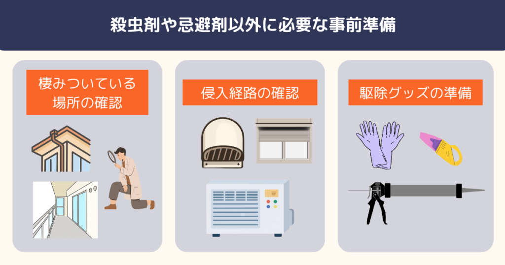 駆除がさらに困難になることも考えられるため、専用の忌避剤を使って追い出し作業を行ってください。