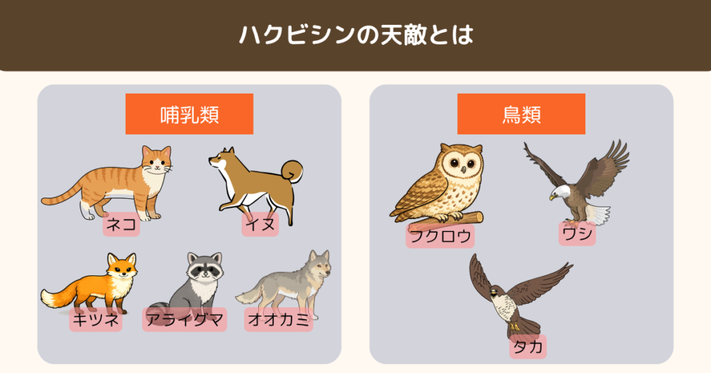 それぞれの動物との関係性やハクビシンの天敵となる理由について解説します。