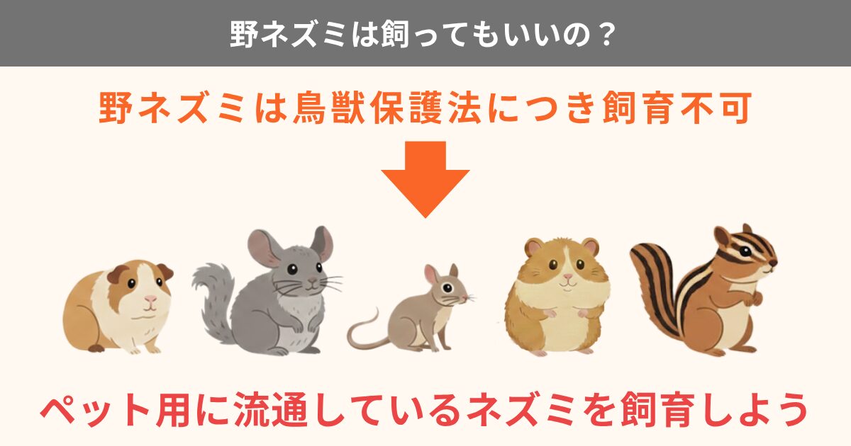 多くの野ネズミは鳥獣保護法の対象で、無許可での捕獲や駆除は禁止されています。