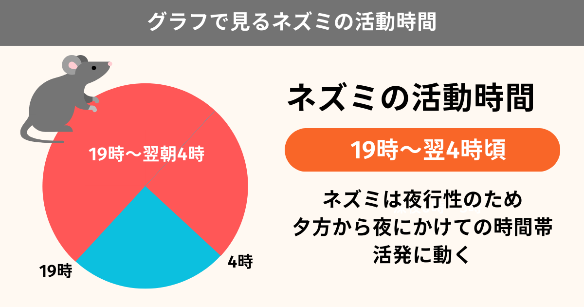 ネズミは夜行性で、夕方〜夜間に最も活発になる