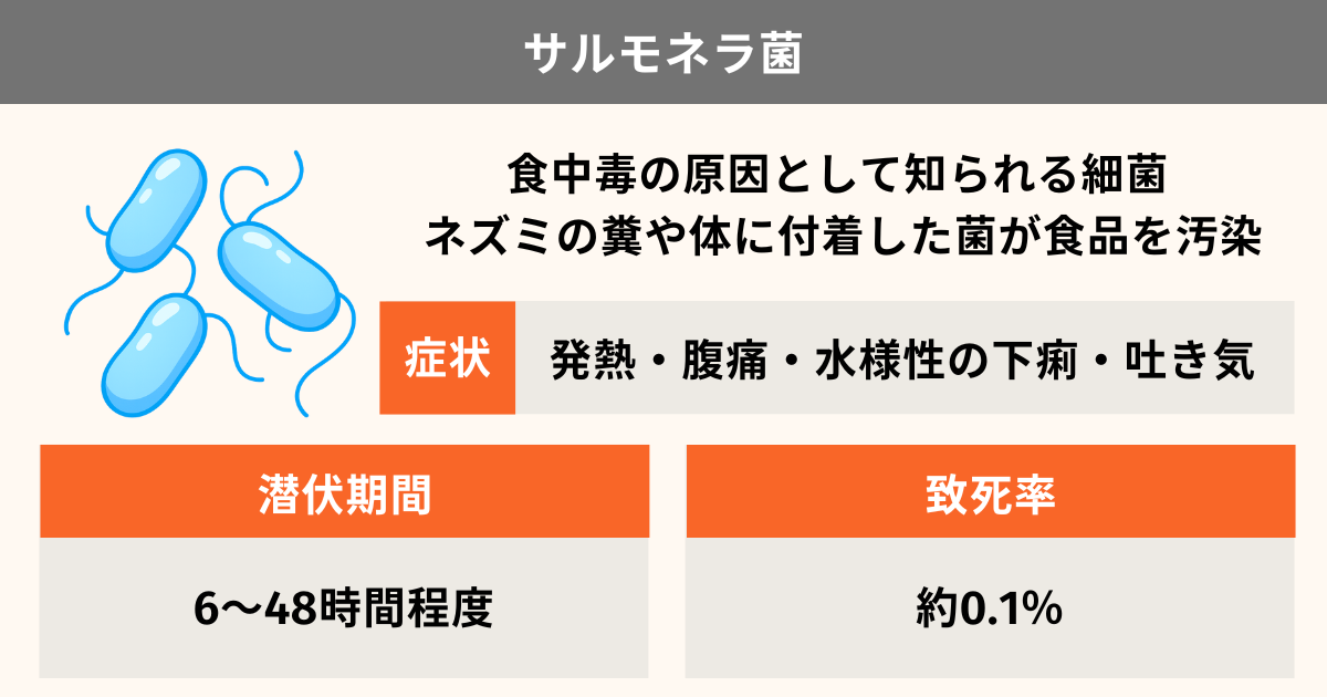 ネズミはサルモネラ菌など、人に影響を与える病原体を運ぶことがあります。