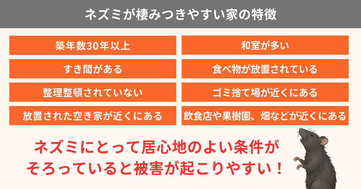 すき間から侵入しやすく、動きも素早いため、見つけにくいイエネズミといえます。