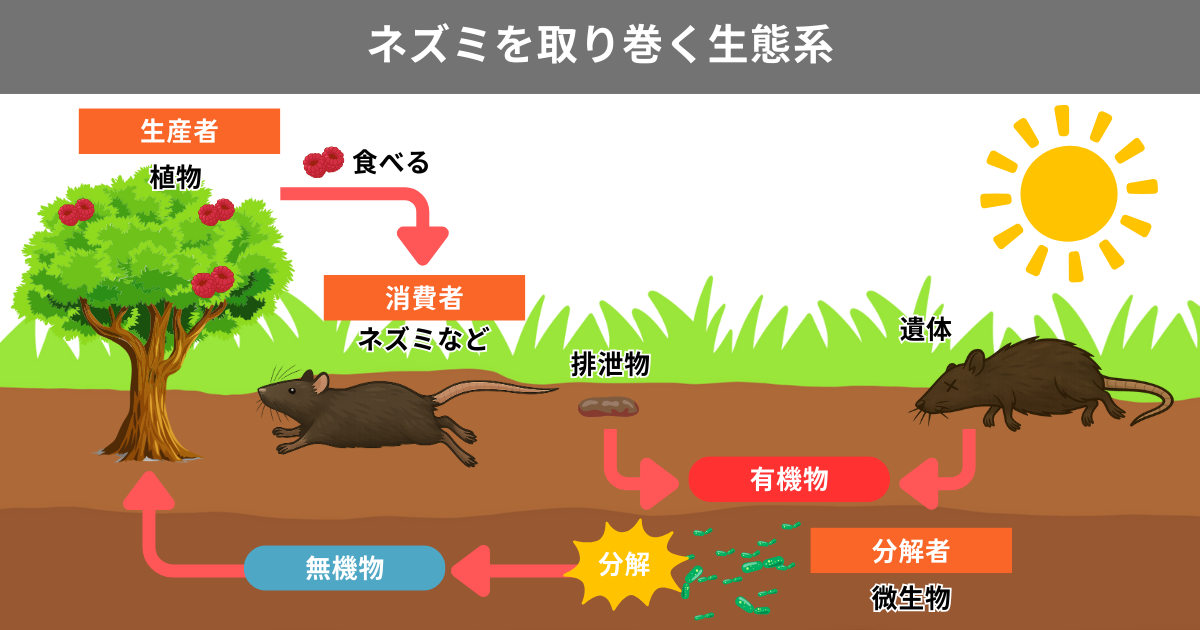 ネズミを理解するには、生態系の中でどのような役割を持つ生き物なのかを知ることが大切です。