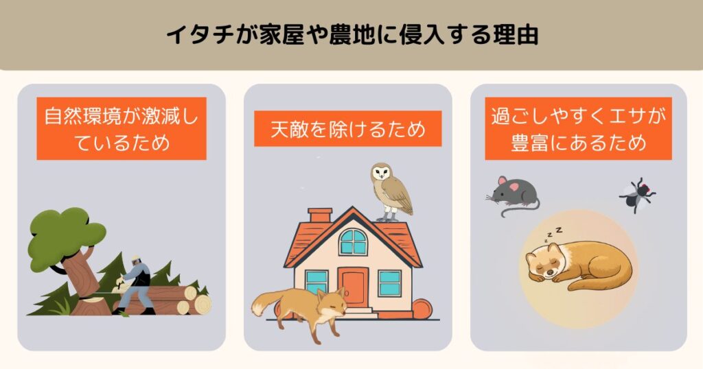 ここでは、イタチが人の生活圏に侵入する理由を解説します。