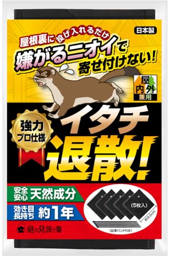 忌避剤は、イタチが嫌うハーブやハッカのニオイを発してその場から追い払う効果があります。